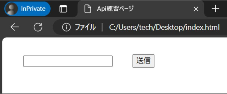 ここまで問題なく出来ていれば、前項で作成したHTMLで送信ボタンを押した際に添付のような挙動を確認できるかと思います。